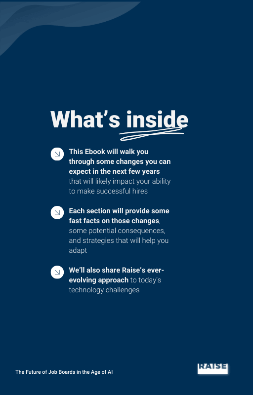 Raise can help you get ready for the use of AI in 2025 on beyond—our Job Board Ebook will take you through the current trends in job board hiring, and where it’s heading next.
