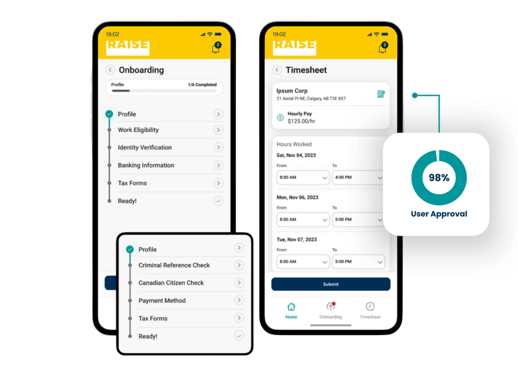 Rather than replacing Contractor Care Reps, the Raise App empowers connection by keeping contractors and support on the same (web!) page. With a single, shared source of information, our service team and contingent workers solve discrepancies seamlessly (that’s how we solve 88.1% of all issues in a single touch!).